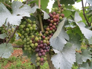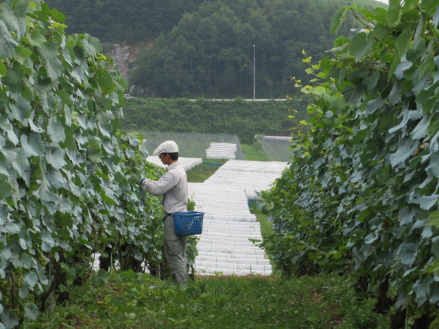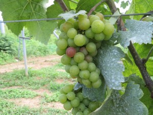 ベレーゾンが始まりました。 8/4 投稿日:2012年8月6日 作成者: admin 返信 ピノノワールのベレーゾンが始まりました。中にはかなり進んだ房もあります。 ピノノワールはあと1か月もすれば熟期になります。 シャルドネとメルロは少し例年に比べて遅い感じです。 これはシーガレーベという珍しい品種。 試験栽培中で未知数ですが、粒がプリっとしてカワイイぶどうです。 ワインになれるかな…