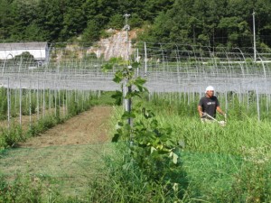 8/18 今日も最高に暑いです。 投稿日:2012年8月18日 作成者: admin 返信 今日も草刈り。 生食圃場の一部の草刈りをサボってたのでボウボウです。 腰位に伸びた草刈りを今日中に終わらせます。 右が草刈り前、左が草刈り後。 シャルドネを摘芯中。
