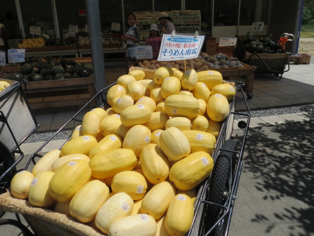 8/24 営業先での出会い。 投稿日:2012年8月24日 作成者: admin 今日は、1日かけて岡山県下の生食葡萄の販売先をまわってきました。 途中で出会った大きなアンパンマンと瀬戸内特産のソーメン南瓜。